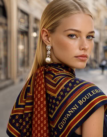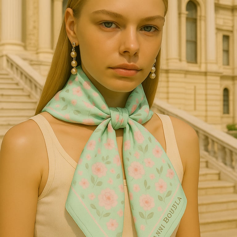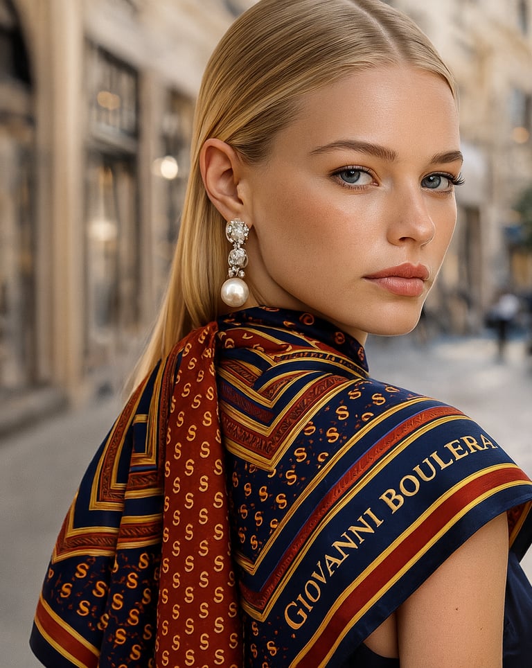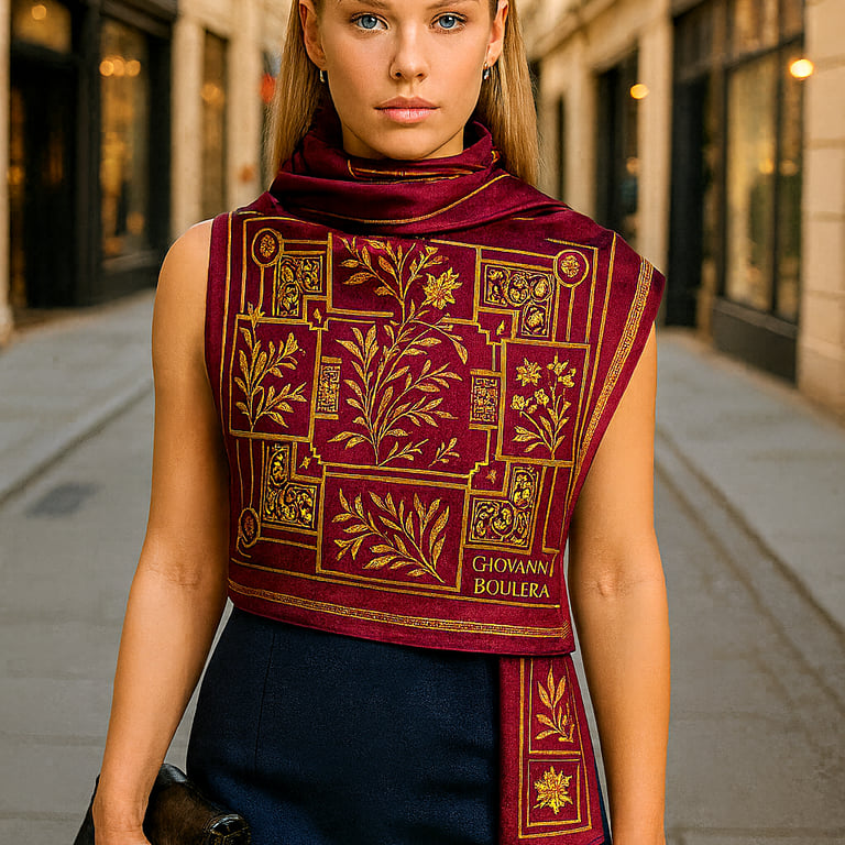 Artigianalità e Filosofia del DesignOgni foulard Giovanni Boulera è realizzato al 100% in seta di gelso, tessuta in fine twill — una tecnica tradizionale nota per la sua delicata trama diagonale e l’incredibile resistenza. I nostri artigiani garantiscono un allineamento perfetto dei motivi, orli rifiniti con precisione e una finitura impeccabile, per un accessorio dal vero livello couture.Ispirate all’eleganza europea e all’arte orientale, le collezioni Giovanni Boulera combinano accenti dorati, simmetrie geometriche e motivi senza tempo — ogni pezzo è una dichiarazione di lusso, sicurezza e individualità. Un Simbolo Senza Tempo di EleganzaIndossare un foulard in seta Giovanni Boulera significa molto più che esprimere uno stile.È un omaggio a secoli di artigianalità e alla bellezza naturale della seta.Che sia appoggiato sulle spalle, annodato tra i capelli o indossato come turbante, ogni foulard incarna la filosofia del brand: